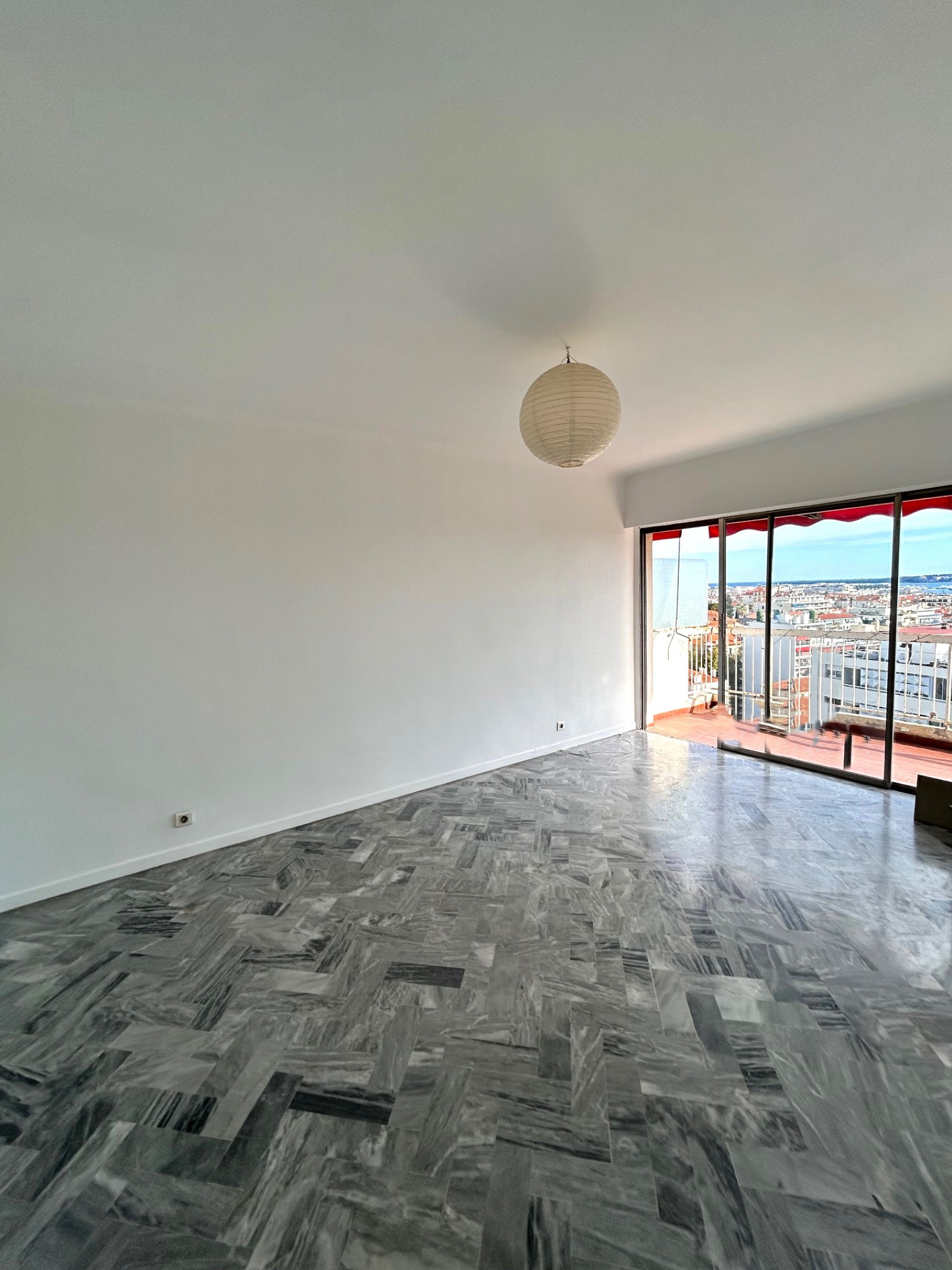 Appartement de deux pièces situé au 7ème étage d'une résidence fermée, offrant une vue imprenable sur la mer Méditerranée depuis sa terrasse, idéale pour vos petits-déjeuners ensoleillés ou apéritifs au coucher du soleil.