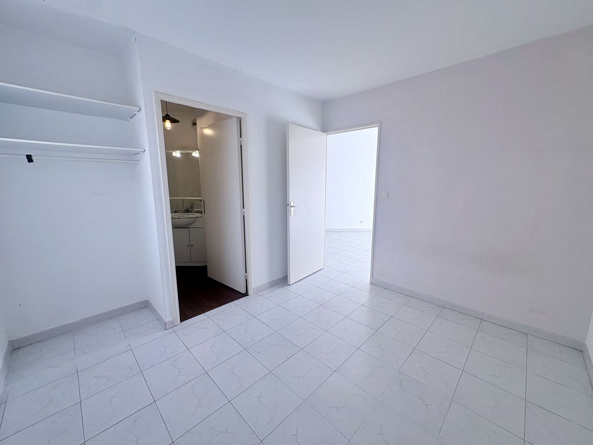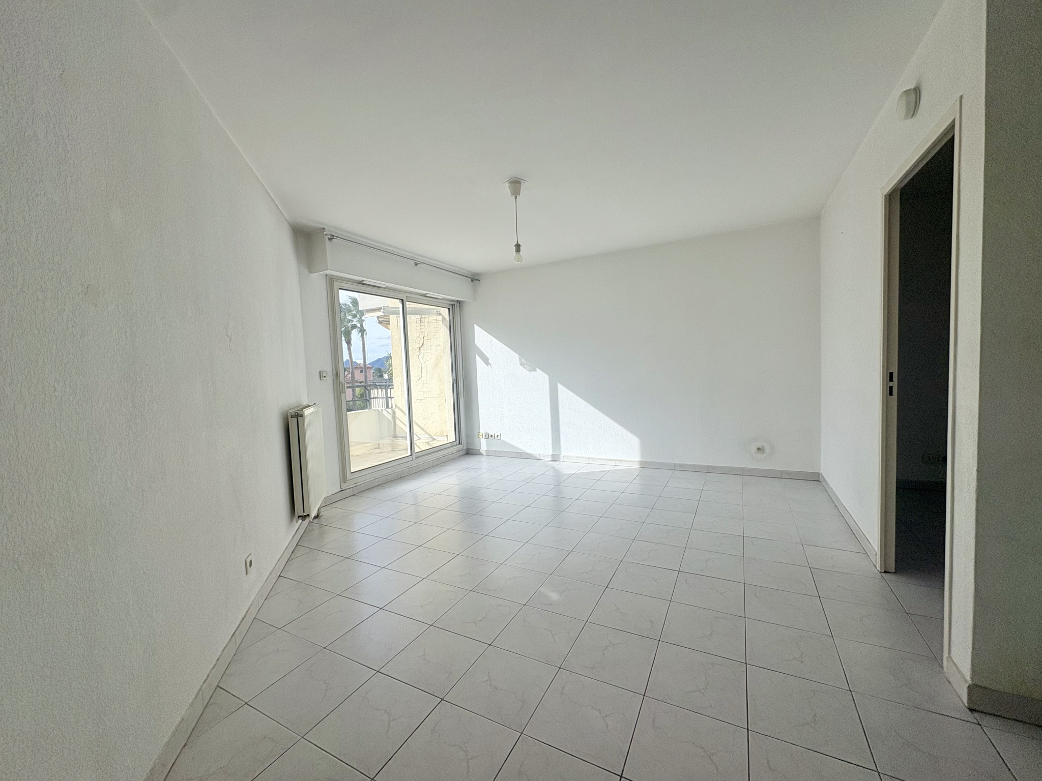 L’appartement, exposé plein sud, se compose d’une pièce de vie d’environ 20 m² ouvrant sur une terrasse ensoleillée, d’une chambre de 9,64 m² avec salle de bain attenante, d’un WC séparé, ainsi que d’une cuisine ouverte entièrement équipée (four, lave-vaisselle, plaque de cuisson et réfrigérateur). L’appartement nécessite un rafraîchissement. Terrasse de 5.5m².
