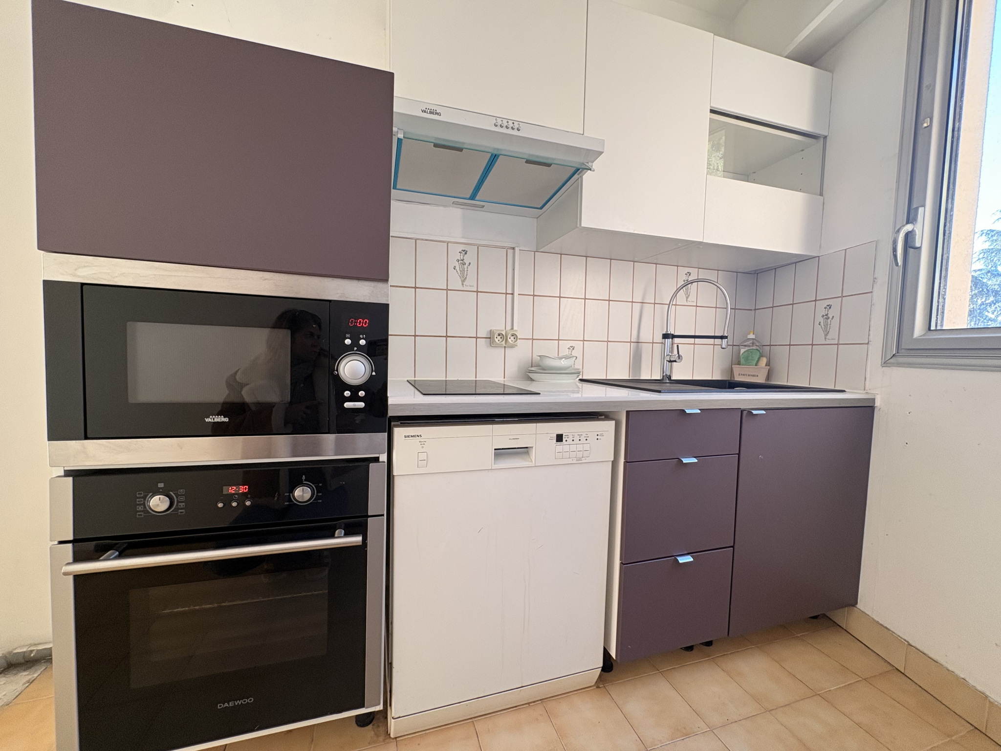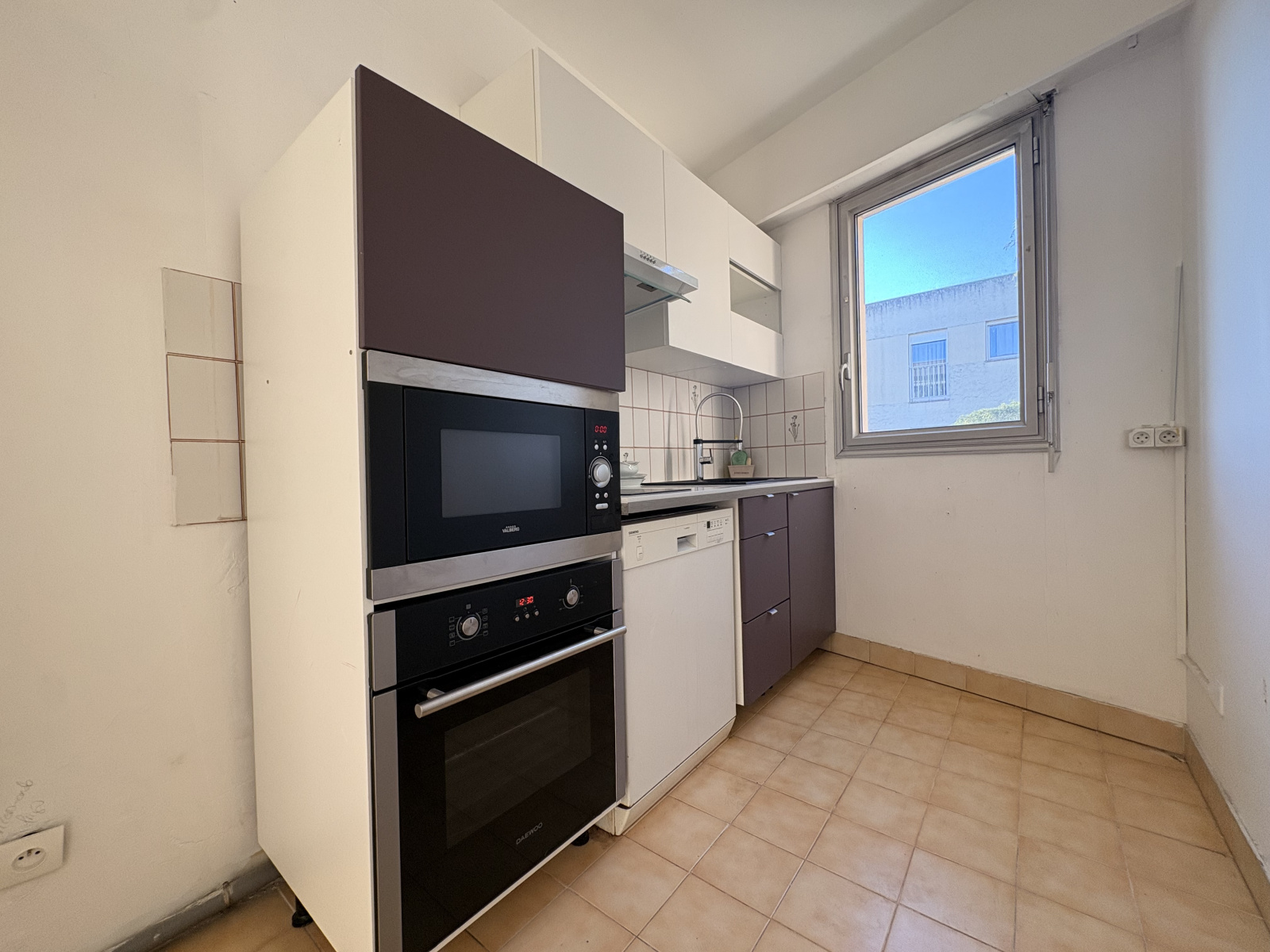 Appartement situé au 2ᵉ étage, de type 2P + cuisine, bénéficiant également d’un sol en marbre. Il se compose d’une entrée avec trois placards, d’une belle pièce de vie d’environ 21,5 m² avec double exposition ouvrant sur une agréable terrasse de 9,03 m², d’une chambre avec grand placard (10,3 m²), d’une cuisine séparée et équipée (four, plaques de cuisson) avec fenêtre, ainsi que d’une salle d’eau avec WC.