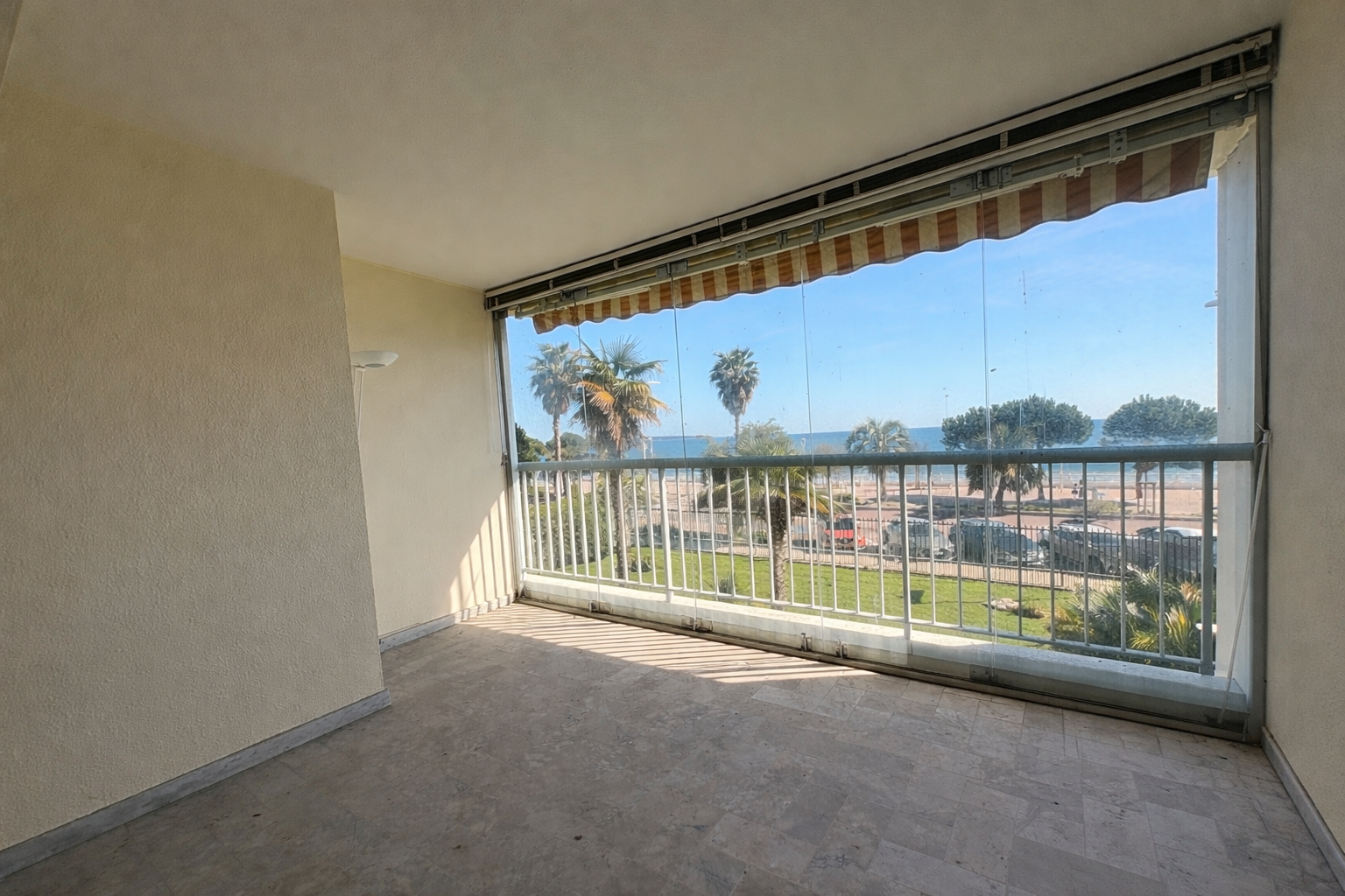 Situé au sein de la copropriété Cannes Midi, en première ligne face à la mer, cet appartement, au 1er étage, se compose d’une entrée, d’une vaste pièce de vie prolongée par une terrasse d’environ 10 m² offrant une magnifique vue mer.