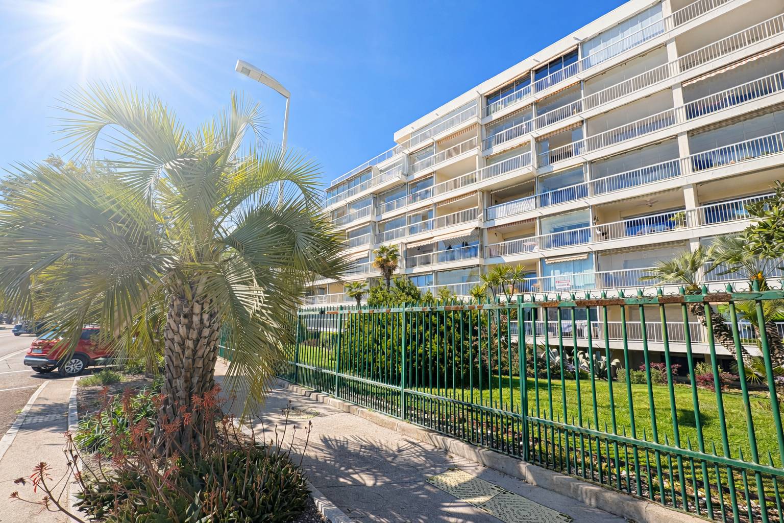 La copropriété Cannes Midi offre des prestations recherchées, telles qu’un service de gardien, des espaces verts et un terrain de tennis.