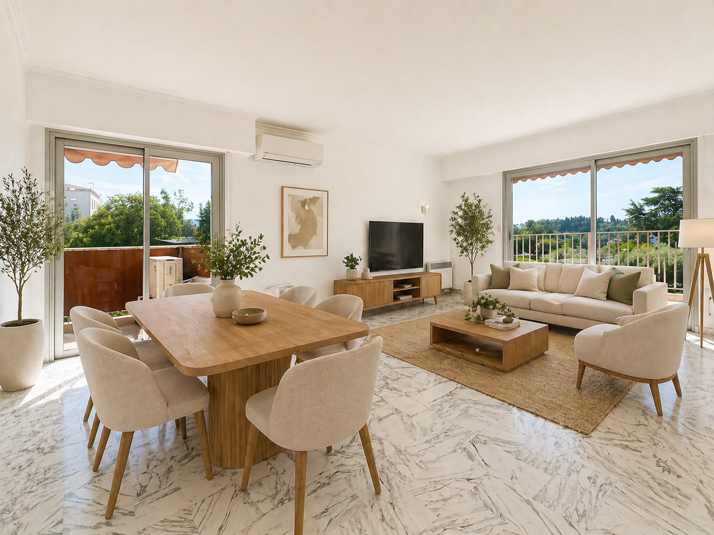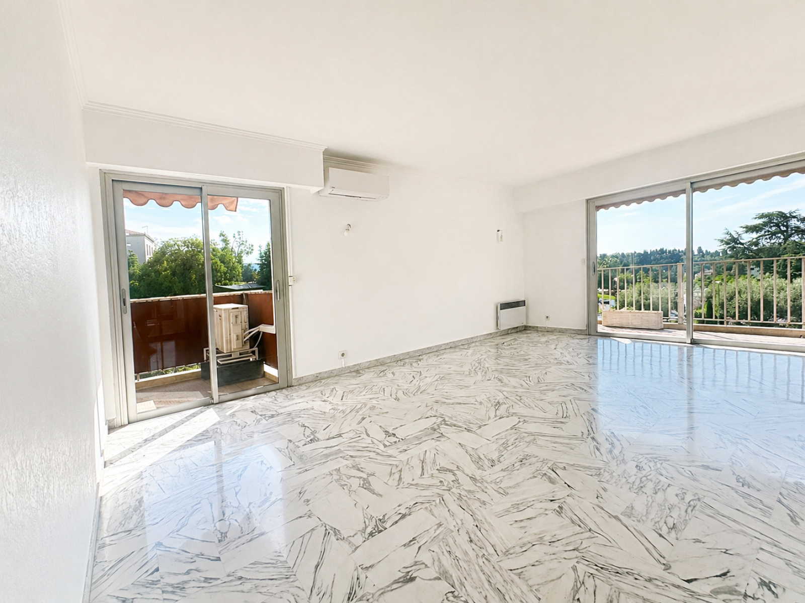 L’appartement est en excellent état, entièrement repeint, avec de beaux matériaux, notamment un sol en marbre de qualité, double vitrage et climatisation.
